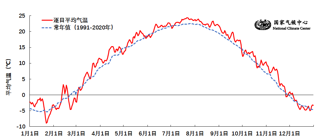 图2 2024年全国平均气温逐日变化(℃)