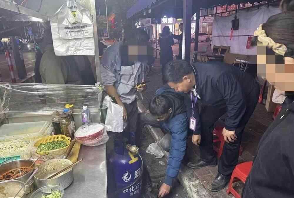 当晚,检查组现场发现部分餐饮企业存在内部洗手池未按要求安装或未正确使用油水分离器预处理设施、未办理城镇污水排入排水管网许可证,部分临街经营流动摊档涉嫌存在乱排餐厨废水至雨水篦子行为。检查人员现场对问题责任单位及个人进行教育,下发告知书,指引其规范落实整改措施,彻底消除污染源,并交由洛浦街相关部门跟进。