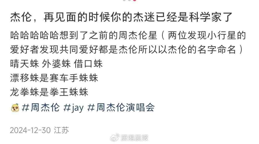 西双版纳新种蜘蛛以周杰伦歌曲命名,也引发了网友们的广泛热议,大家“隔空喊话”周杰伦:你的歌迷已经是科学家了!
