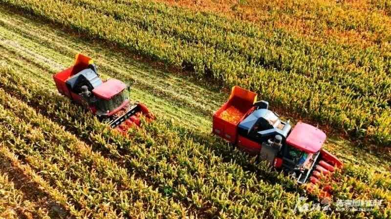 2024年9月初,呼图壁县制种玉米迎来丰收。来源:呼图壁县融媒体中心