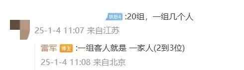 对此,雷军回复称:“一组客人就是一家人(2到3位)。”