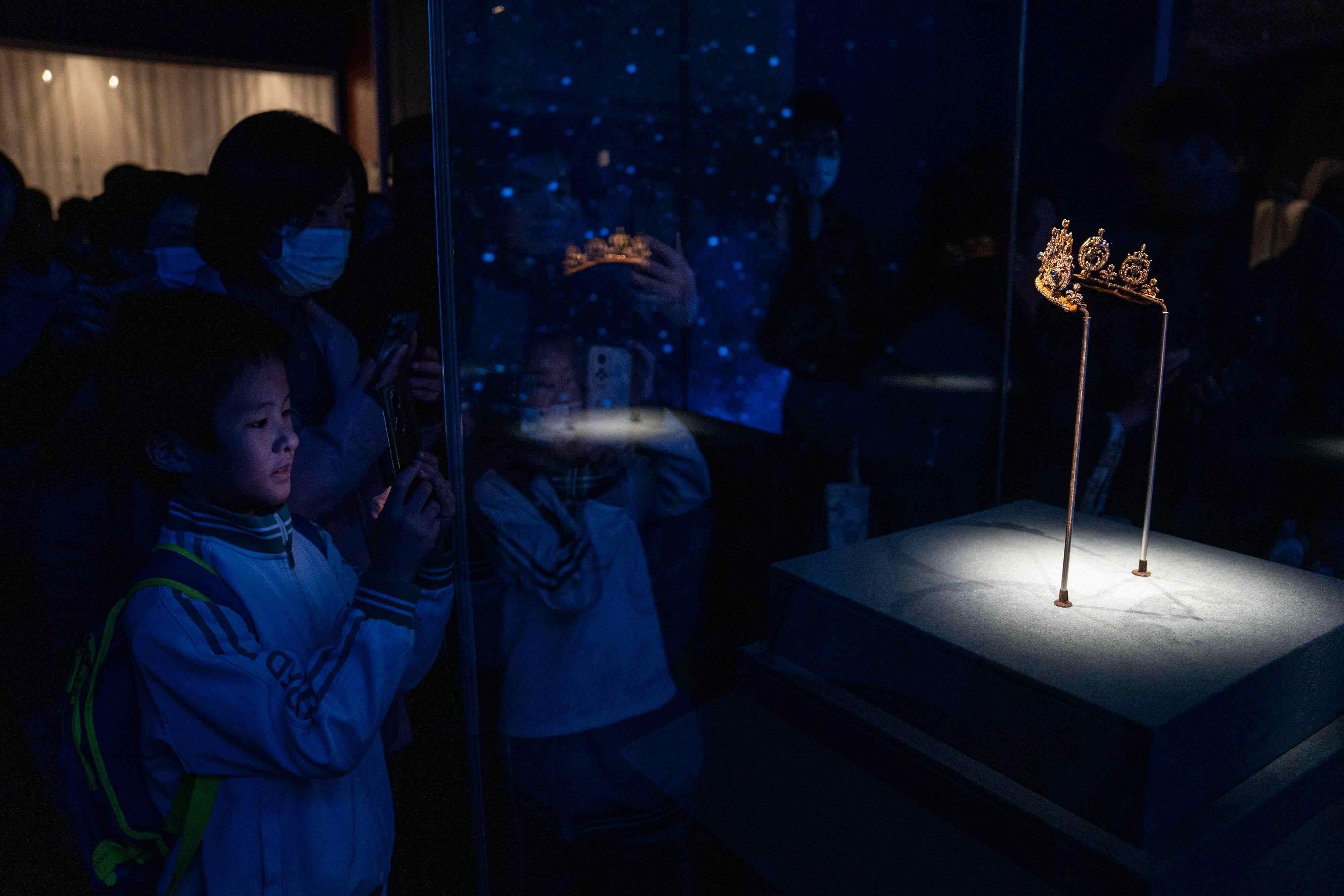 新年迎新展,2025年1月1日,广东省博物馆新年首个特展“凝眸——16至20世纪典藏珍宝艺术展”正式面向公众开放。拿破仑大婚宝石礼物套装、丹麦泰拉公主蓝宝石钻石冠冕、鎏金点翠嵌宝龙凤冠……展览汇集了来自广东省博物馆、故宫博物院以及香港两依藏博物馆、意大利安娜莫得基金会等境内外多个收藏单位的近400件(套)艺术珍宝,向观众展示16至20世纪的历史变迁与东西方美学的交融故事。