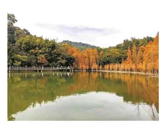 2024年12月21日,农历“冬至”,艳阳高照,白云山黄婆洞水库的落羽杉再次染红,市民络绎不绝地踏着围绕水库打造的几百米亲水栈道赏冬、拍照。