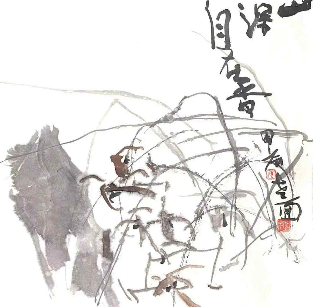 刘释之评:子之燕居,申申如也,夭夭如也。(《论语·述而篇》)程子曰:“此弟子善形容圣人处也,为申申字说不尽,故更着夭夭字。今人燕居之时,不怠惰放肆,必太严厉。严厉时着此四字不得,怠惰放肆时亦着此四字不得,惟圣人便自有中和之气。”钱穆曰:“大树干条直上,申申也;嫩枝轻盈妙婉,夭夭也。兼此二者,不过严肃,亦不过松放;非其心之和畅轻安,焉得有此?”懒堂画兰,高山樵以为得“萧散、奇崛、酣畅”,此即其气象、笔法、气韵而言之,释之则以为懒堂之兰,确能一脱古来文人写兰之窠𦥑,不独题款随机生发而莫不中节为然,即其纵横涂抹乱中不乱笔致生动而态度自见亦足叹观。若从夫子“致中和”言之,则“申申如”不足,而“夭夭如”过之矣。