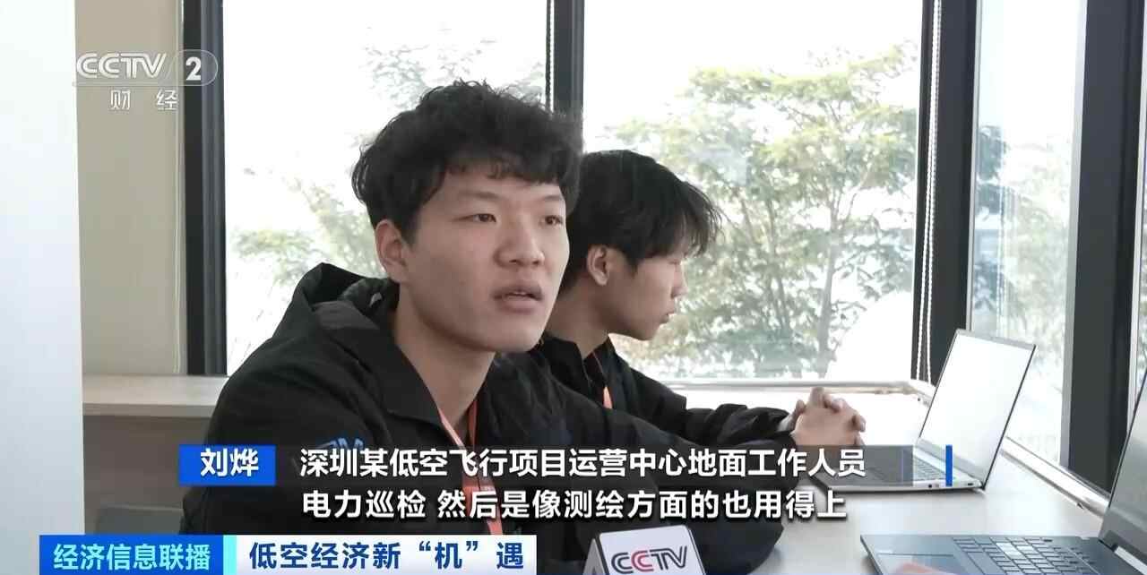 深圳某低空飞行项目运营中心地面工作人员 刘烨:航拍、电力巡检、测绘都能用得上,选择的岗位很多。
