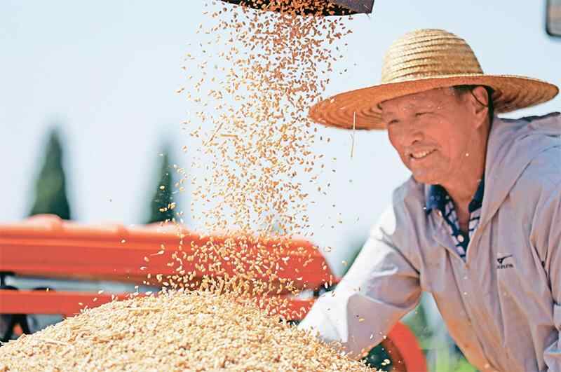2024年,全国粮食总产量14130亿斤,在连续9年稳定在1.3万亿斤以上的基础上,首次迈上1.4万亿斤新台阶。图为2024年5月25日,山东省郯城县山南头村村民将收获的小麦装车。新华社发 张春雷/摄