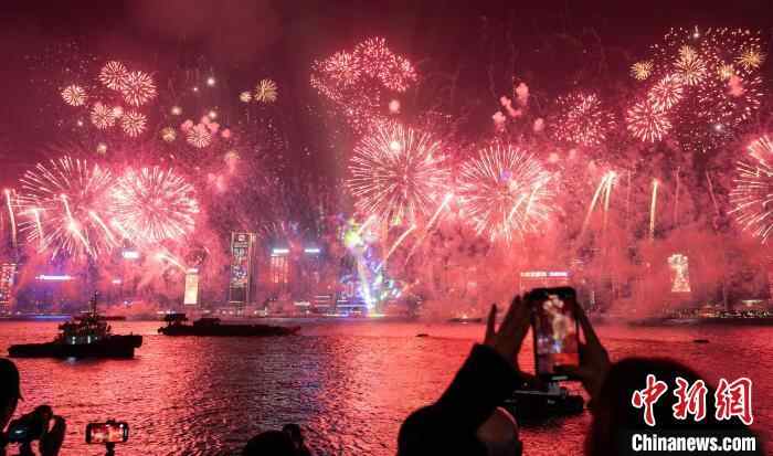 2025年1月1日0时,主题为“幸福乐章”的新年烟花音乐汇演在香港维多利亚港上空上演。 中新社记者 侯宇 摄