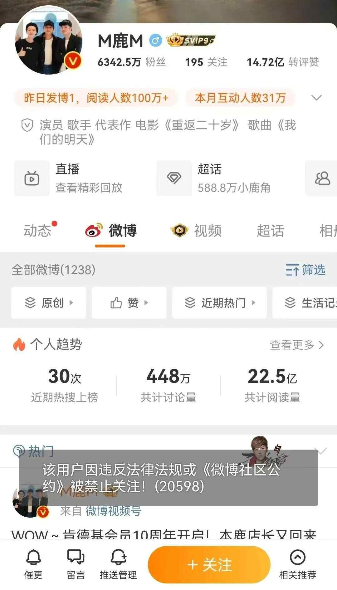 1月6日,#鹿晗社交平台被禁止关注#冲上微博热搜第一。羊城晚报记者搜索发现,鹿晗多个社交平台账号已被禁止关注。