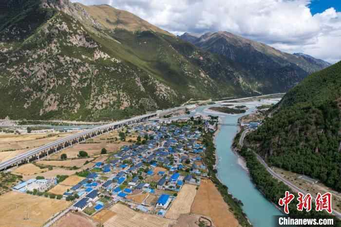 2024年9月1日拍摄的西藏林芝工布江达县高等级公路(左)和国道318线(右)。(无人机画面)中新社记者 江飞波 摄