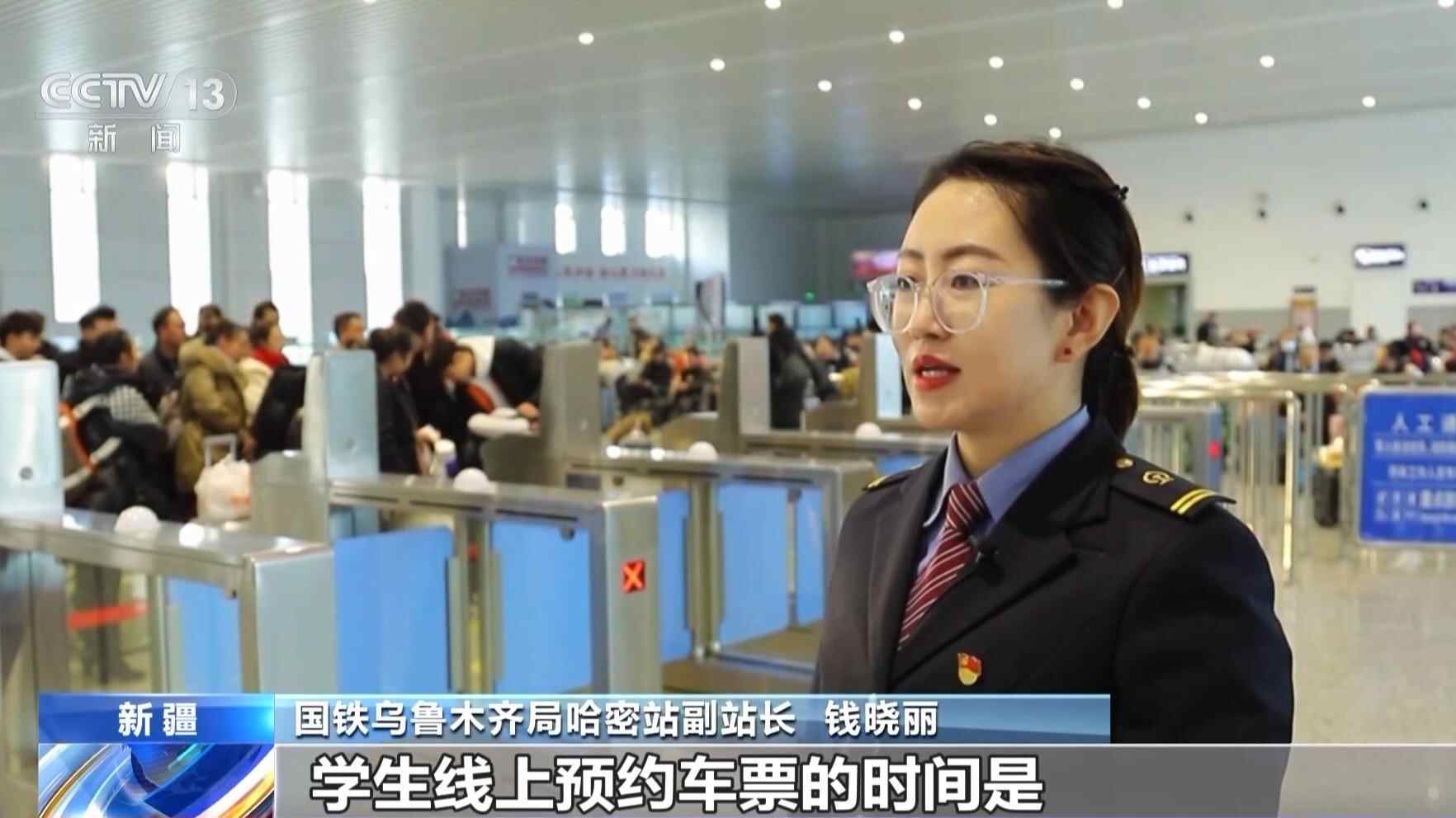 国铁乌鲁木齐局哈密站副站长 钱晓丽:学生线上预约车票的时间是自2024年12月12日至2025年2月12日期间。符合条件的旅客,可在开车前17天提交预约购票需求,最晚可预约2025年2月28日的车票。同一账户最多可同时提交3个订单,每个订单可添加1个乘车日期的5个“车次+席别”的组合,学生优惠票可选择硬座、硬卧、二等座,最多可为包含本人在内的9名学生旅客预约。