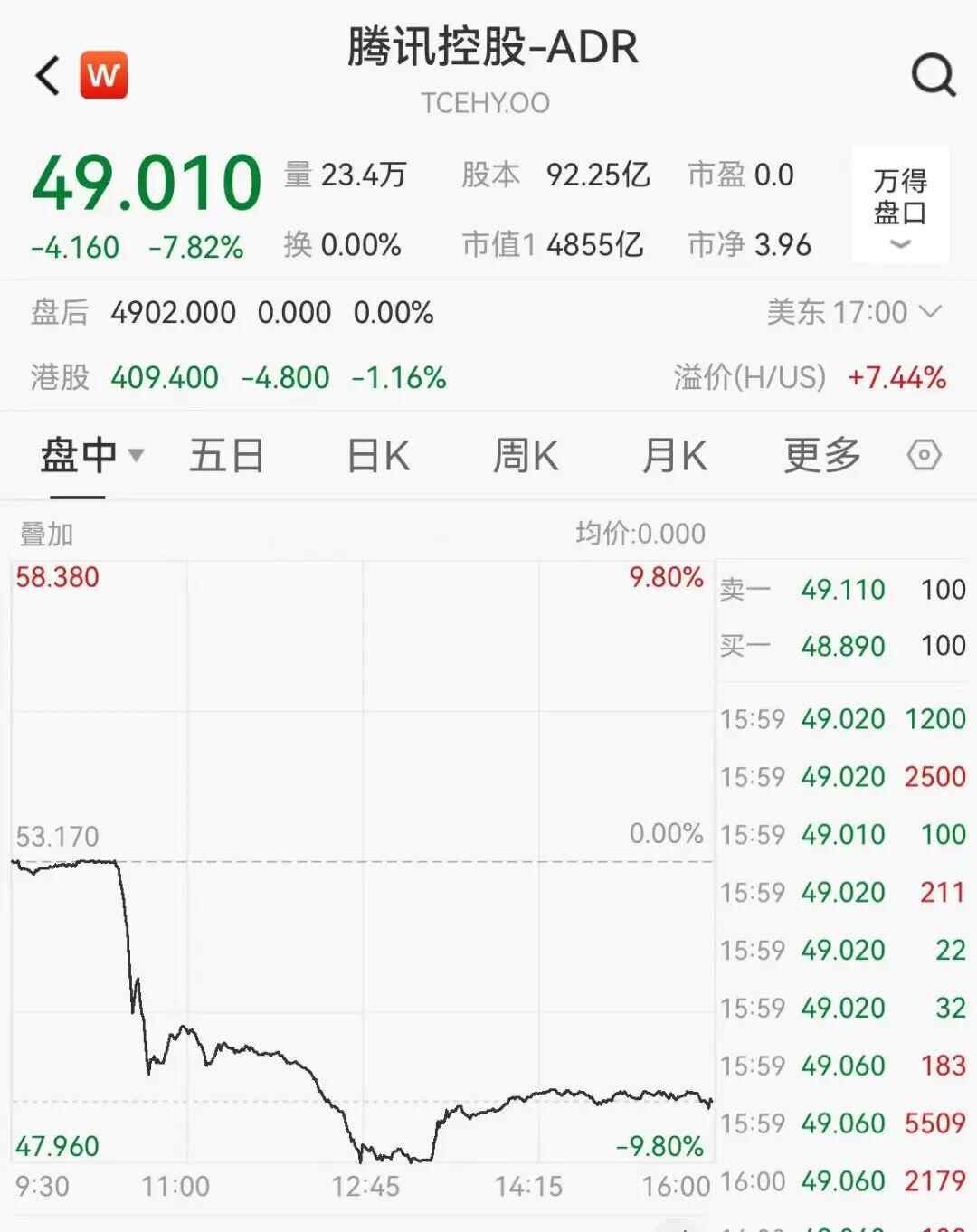 当地时间1月6日,腾讯控股ADR大跌超7%,此外,