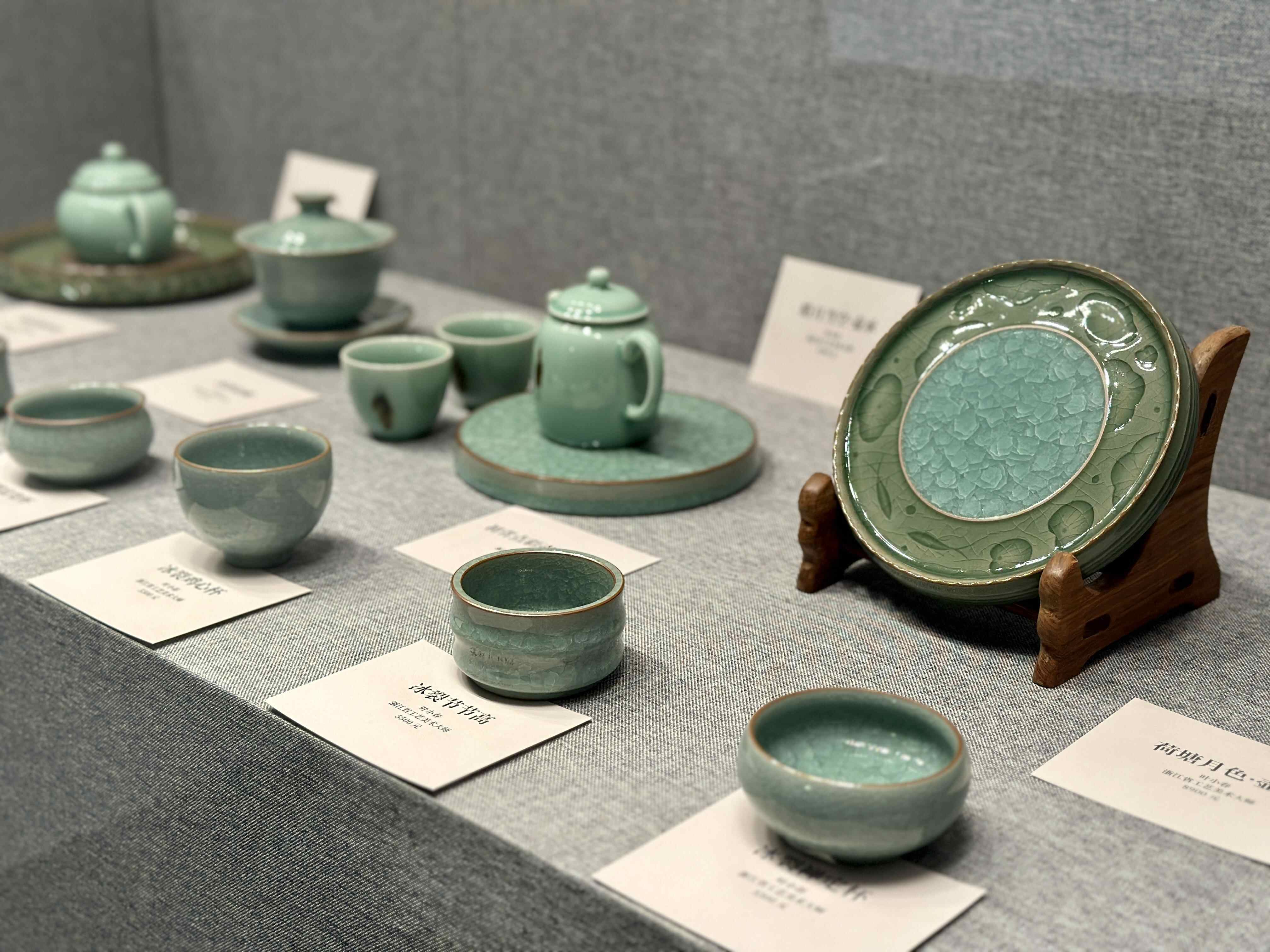 本次展览上,观众不仅能一赏叶小春经典“冰裂纹”代表作、叶晨曦独创“鱼纹古陶”系列作品,同时亦能细品梅子青、粉青、点彩流动釉、天目金滴釉、珍珠艺术釉等多种胎釉之妙,尽观龙泉青瓷之美。