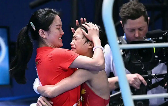 在巴黎夺金后,陈若琳和全红婵拥抱在一起