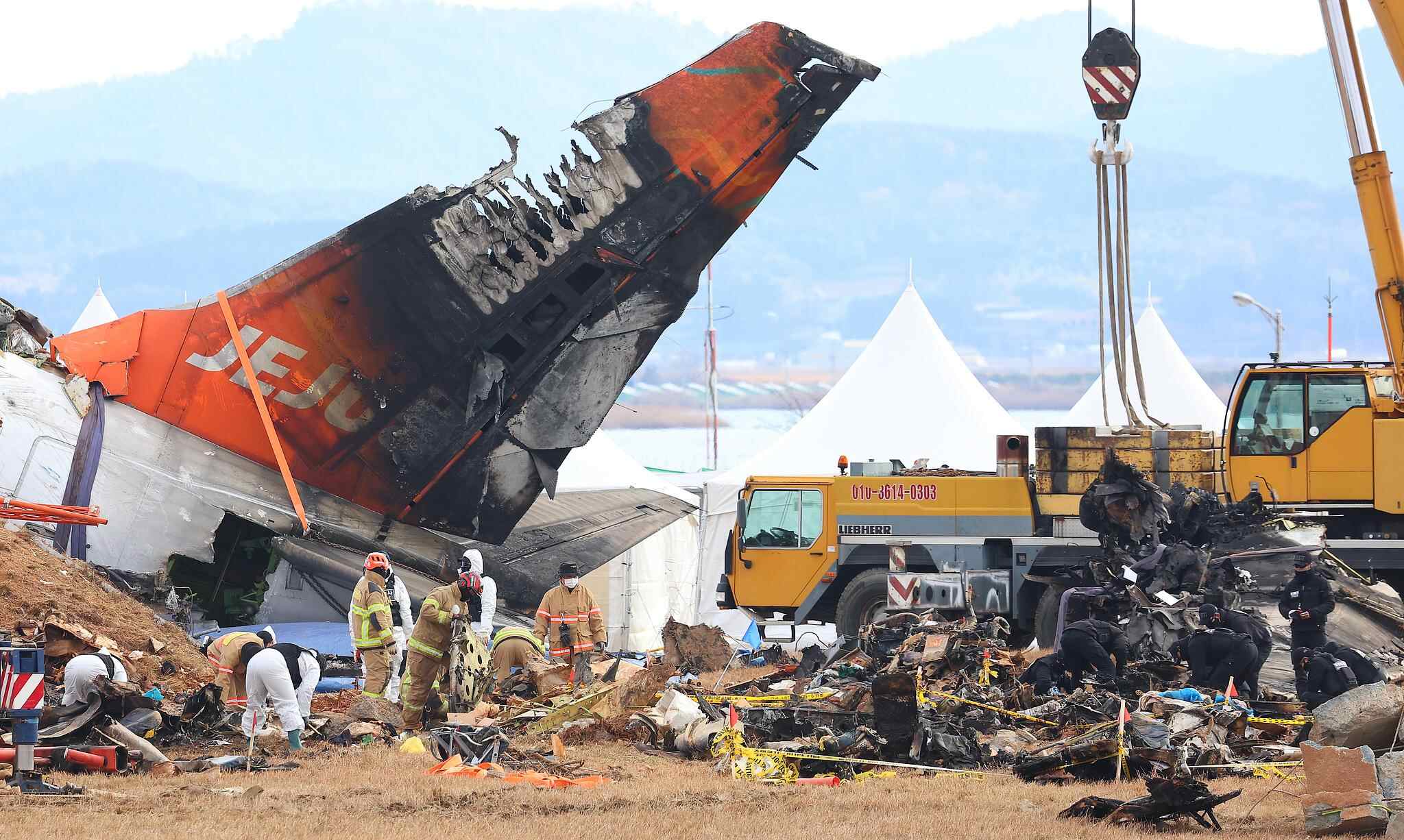据国土交通部介绍,在对失事客机发动机进行调查的时候在一台发动机内发现有鸟类羽毛,另一台发动机是否也遭遇鸟击还有待进一步调查。