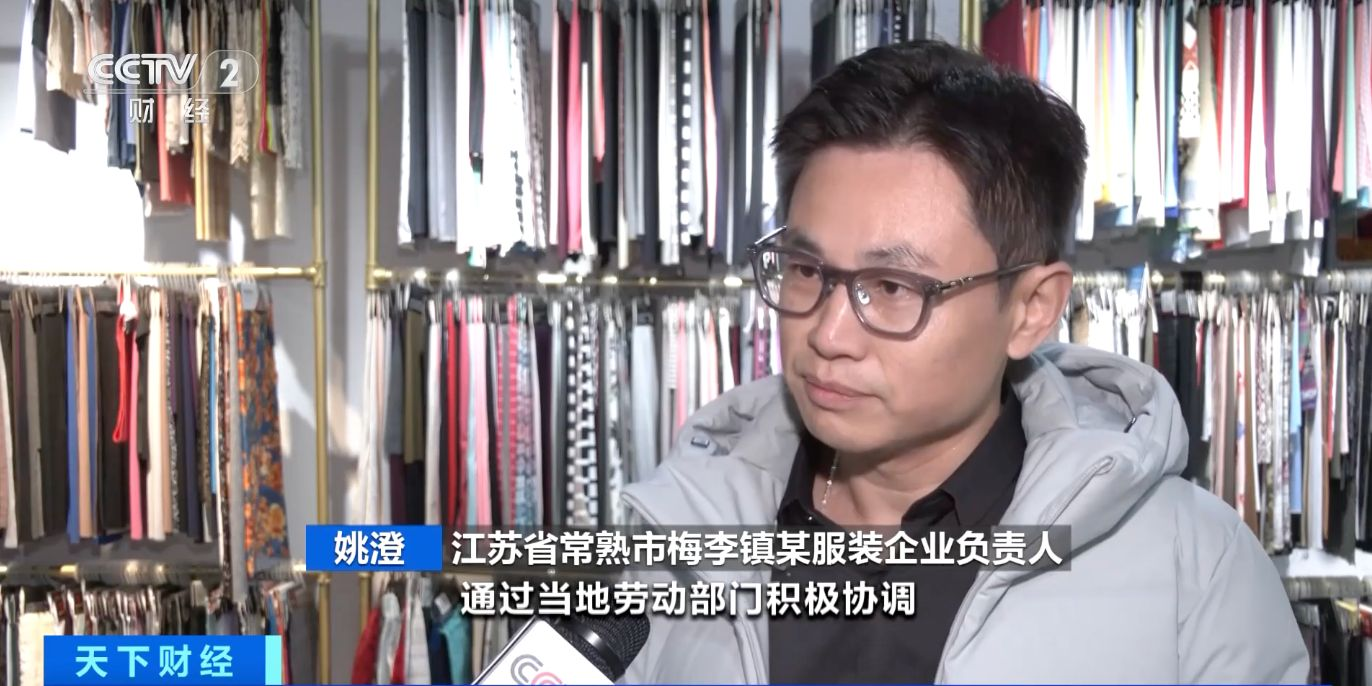 江苏省常熟市梅李镇某服装企业负责人 姚澄:像中小微企业,通过当地劳动部门积极协调,帮助企业排除招聘困难。
