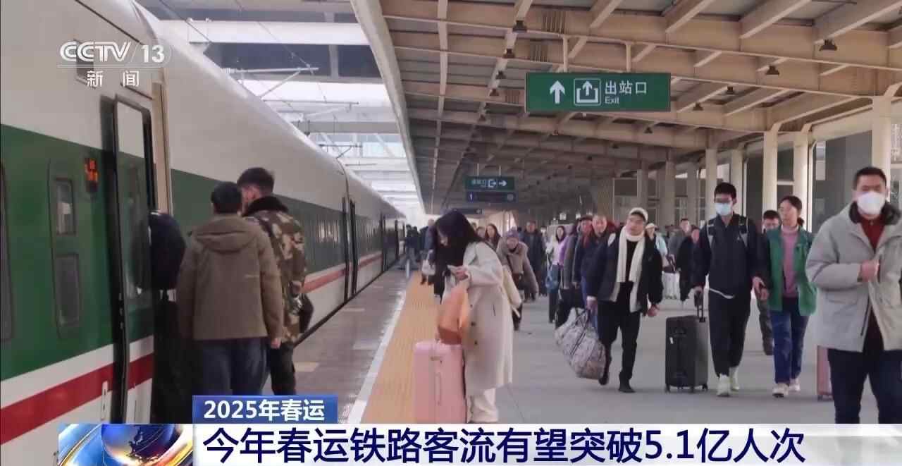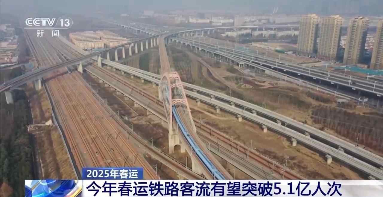据介绍,2025年春运全国铁路发送旅客有望突破5.1亿人次,日均1275万人次,同比2024年春运增长5.5%。