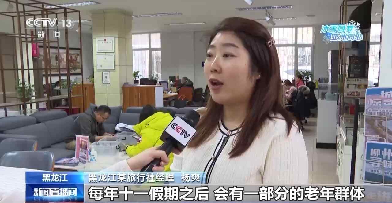 黑龙江某旅行社经理 杨爽:像南方城市一般比较吸引北方的就是它的温暖,每年十一假期之后,会有一部分的老年群体选择去三亚或者是西双版纳或者是防城港这样的热门城市。从2024年10月到2024年12月31日,我们大概接待去南方的游客达到2556人,销售额是100万左右,比去年增长20%。
