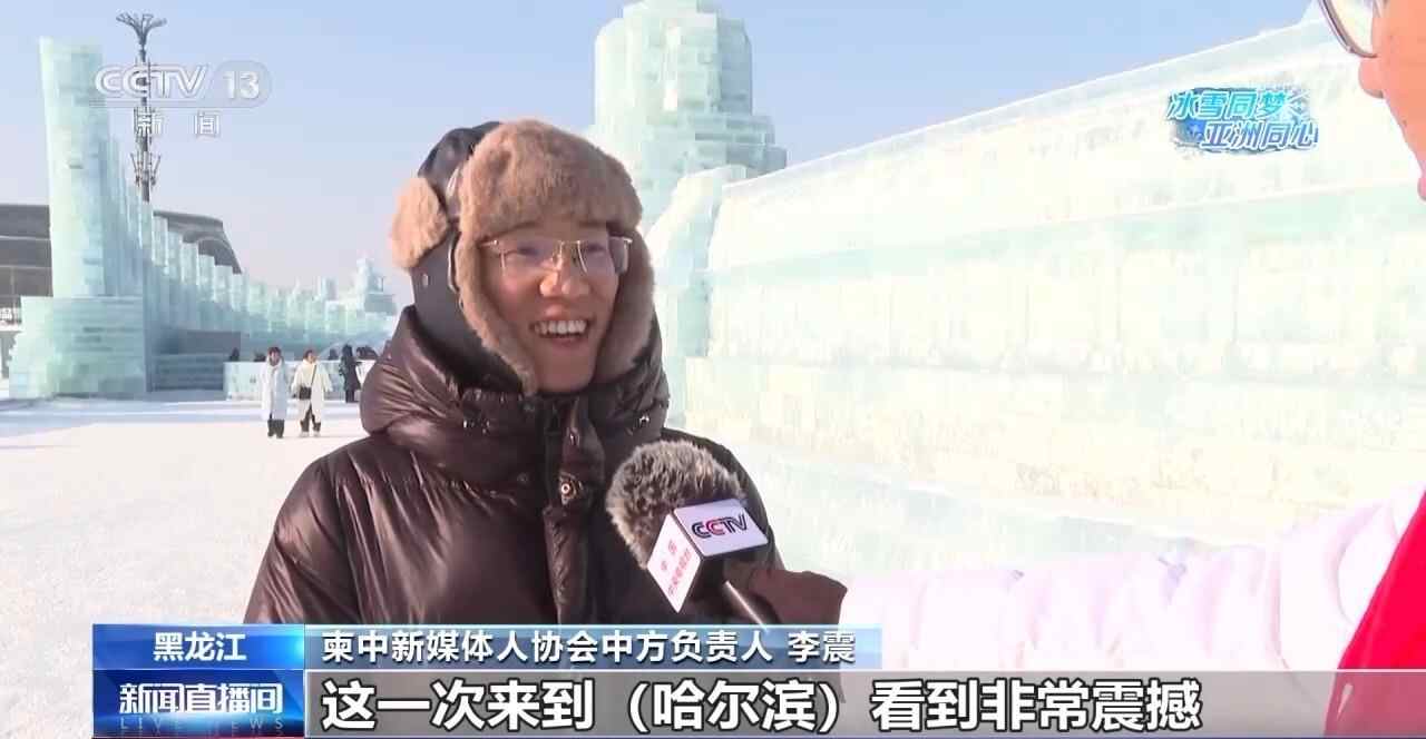 柬中新媒体人协会中方负责人 李震:这一次来到哈尔滨看到非常震撼,包括柬埔寨的网络达人从来没见过这么漂亮的冰雪。他们都希望能够在这里好好游玩、拍摄,把哈尔滨漂亮的地方宣传到东南亚,甚至到全世界去。