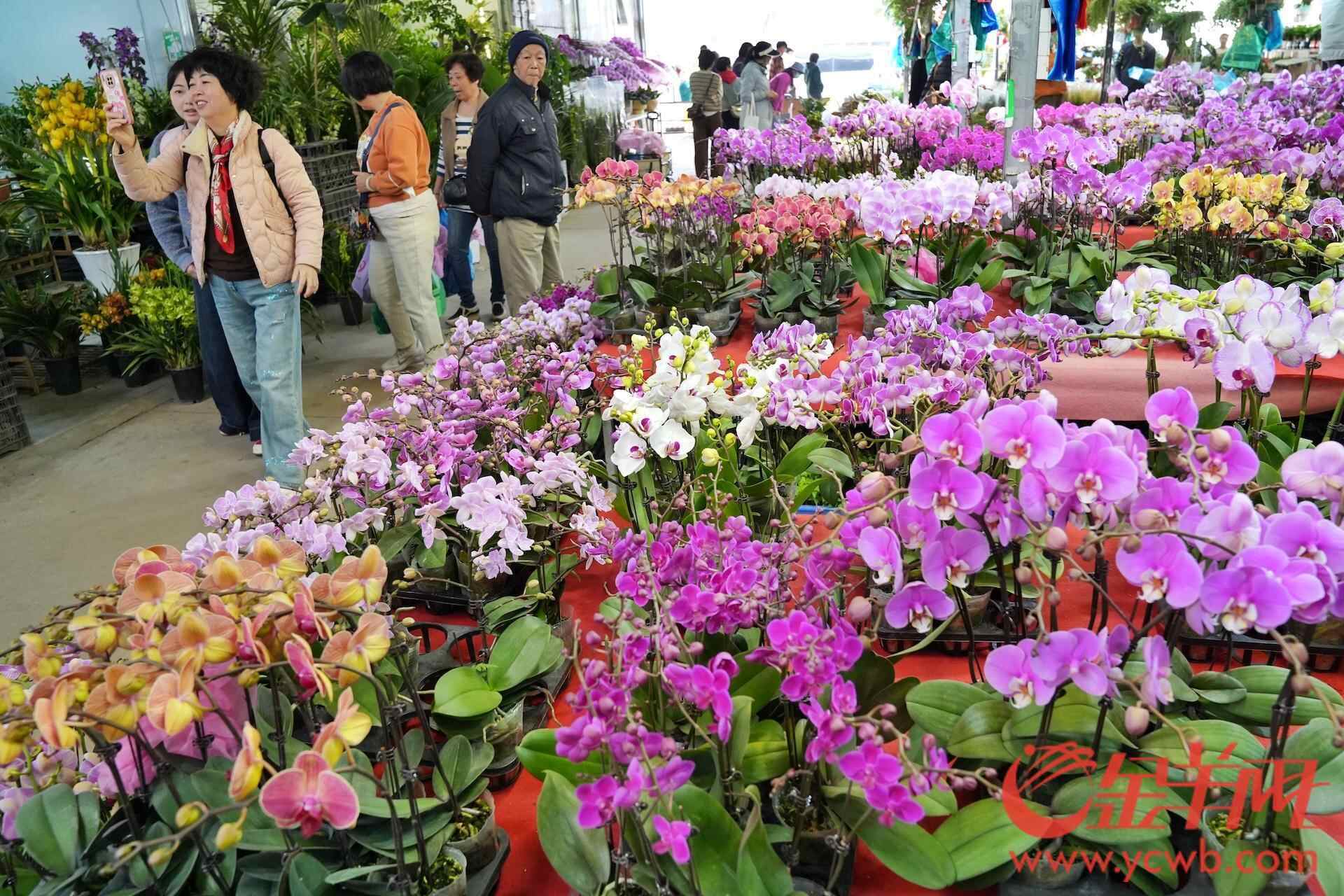 正在用手机忙着回复客户信息的黄小姐是佛山华诚兰园基地的负责人,其花卉种植基地位于佛山里水,今年,她将自家基地种植的蝴蝶兰带到岭南花卉市场售卖。其中,“锦绣一方”“烈焰龙王”等是黄小姐花卉基地供应的特色品类。