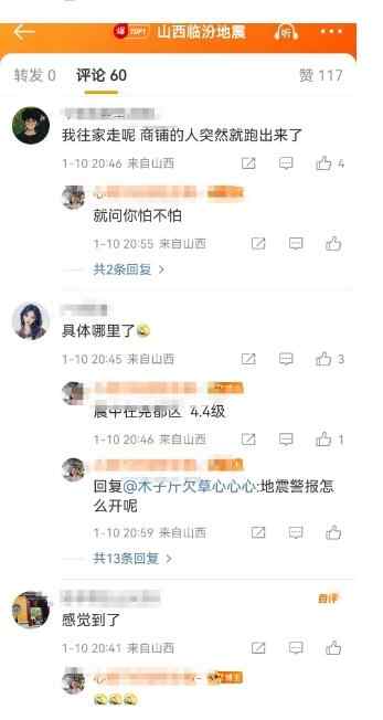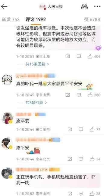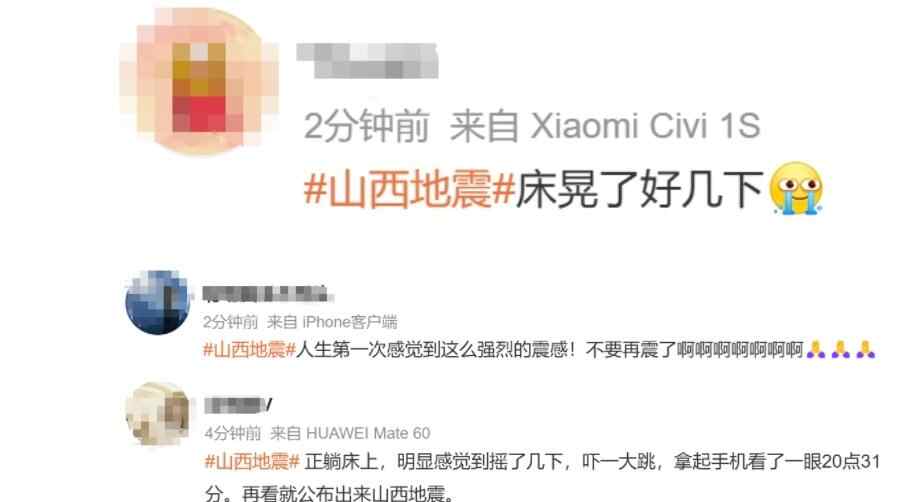 多地网友表示有震感,有网友表示“第一次有这么清晰的震感”“床晃了好几下”。
