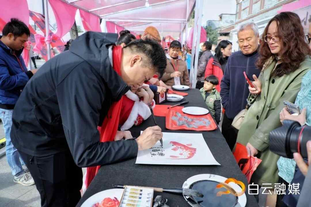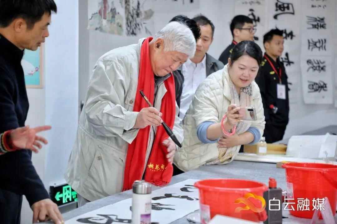 除书画名家合作绘制的大幅生肖国画图《瑞蛇啟新,春暖白云》外,还邀请许鸿基、丘仕坤、李醒韬、刘思东等40余位名家为本次活动创作作品,青年书画爱好者在现场创作挥春送福。
