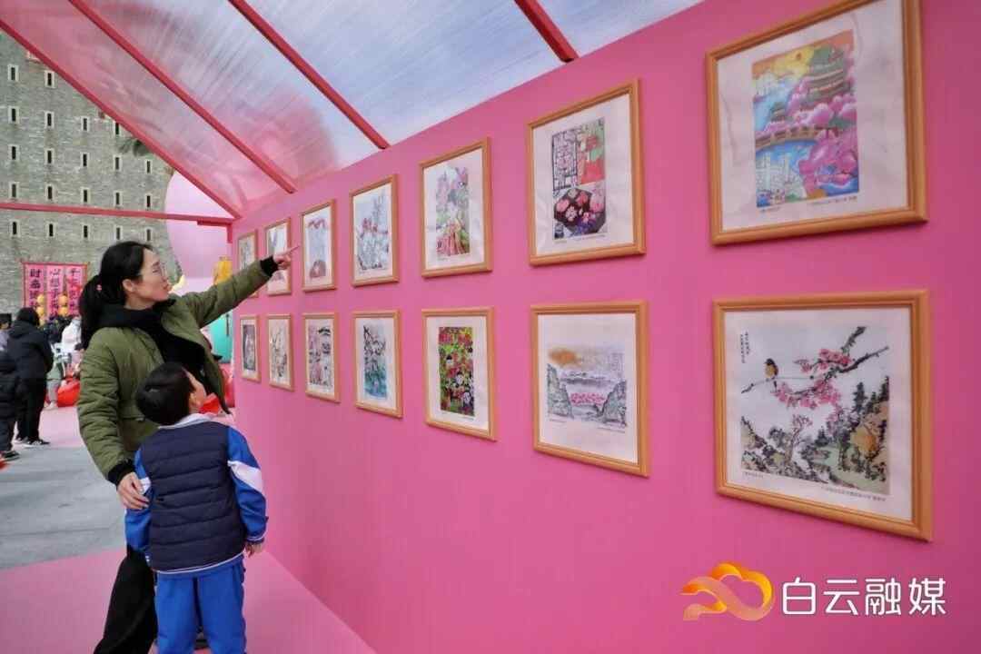 现场,不少市民驻足文创小屋、童趣小屋和许愿小屋,或与“喜桃桃”巨型ip合影留念,“淘”其周边文创产品;或观赏小朋友绘画的桃花作品;或许下自己的新年愿望,徜徉在一片欢声笑语的“桃花源”中。