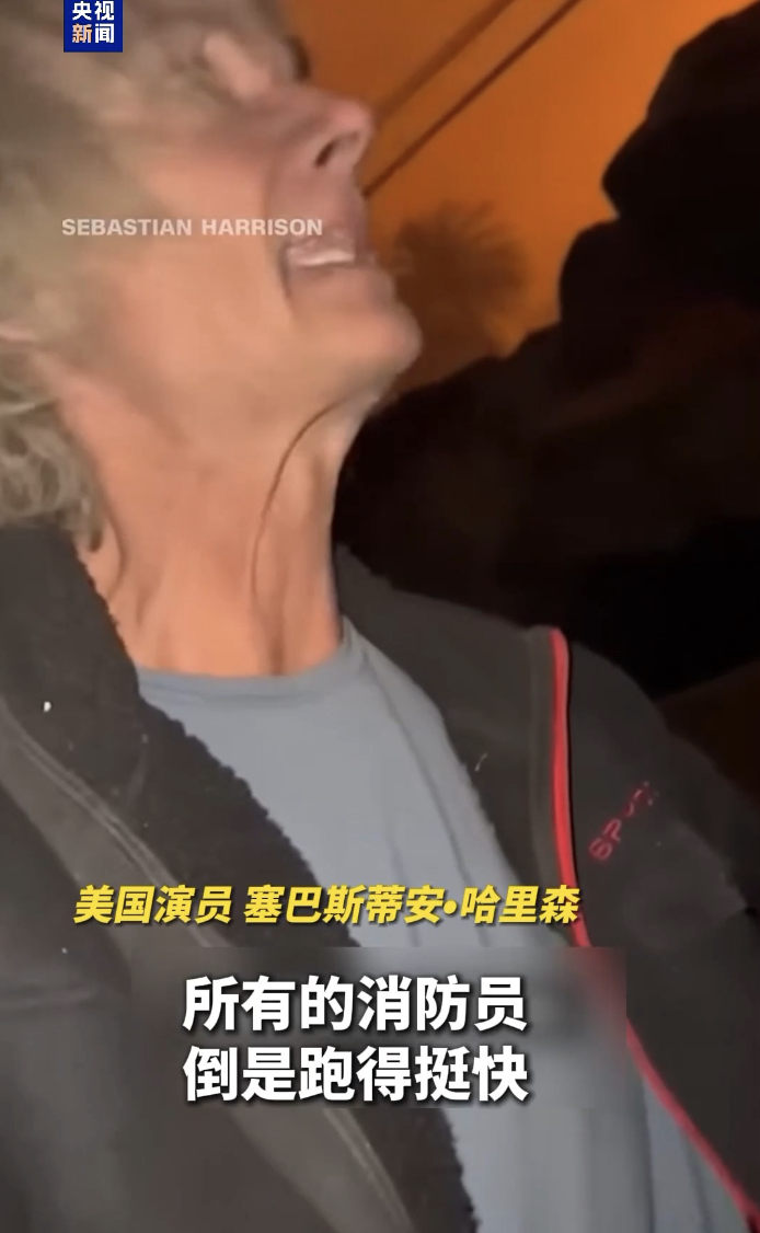 在山火逼近时,居住在洛杉矶的美国演员塞巴斯蒂安·哈里森记录下自己的住所被大火烧毁、自己因未及时撤离差点被迫跳海逃生的视频。