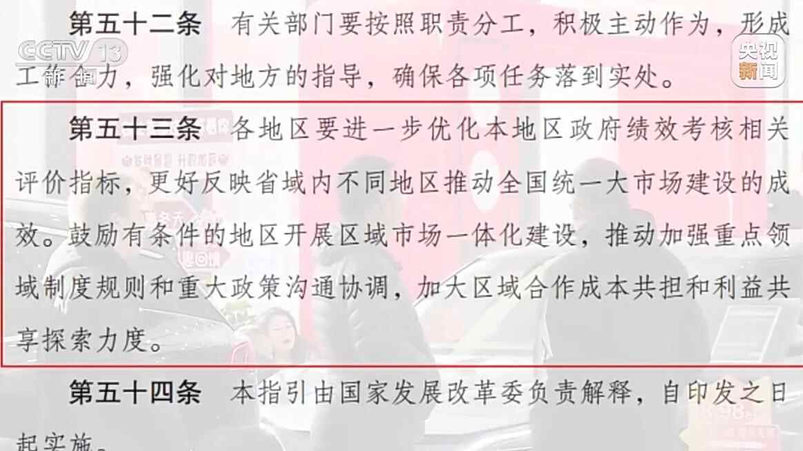 建设全国统一大市场,要求地方政府做到全国一盘棋,破除地方保护和市场分割。但人口和企业流动,会带来经济数据和税收的增与减,这也对地方政绩考核标准提出了新的要求。为此《指引》提出,各地区要进一步优化本地区政府绩效考核相关评价指标,更好反映省域内不同地区推动全国统一大市场建设的成效。