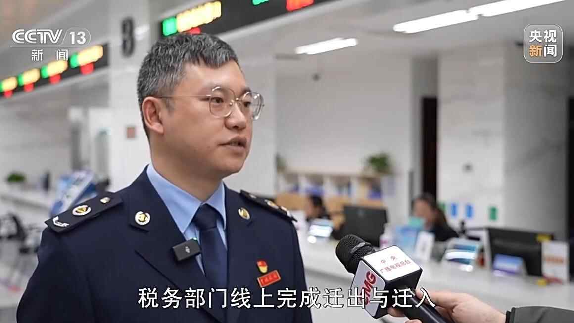 国家税务总局太仓市税务局沙溪税务分局副局长 陈伟辉:过去办理跨区迁移手续,纳税人需要携带不同资料分别到迁出地和迁入地的税务部门实地办理,来回奔波成本较高。目前,我们已实现纳税人跨区迁移全流程线上办理,纳税人在电子税务局端发起申请,税务部门线上完成迁出与迁入,整个过程十分迅速。