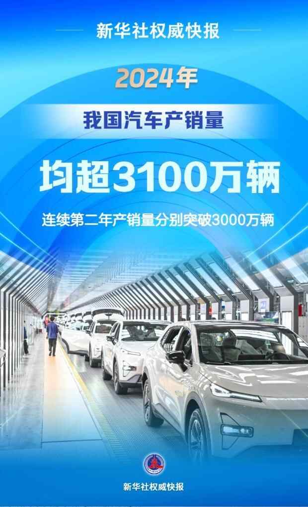 13日,中国汽车工业协会公布数据显示,2024年我国汽车产销量均超3100万辆,连续第二年产销量均突破3000万辆,其中,新能源汽车年产销量均首次突破1000万辆,均超1200万辆,实现跨越式发展。