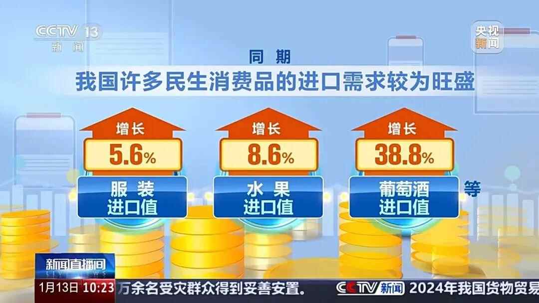 据海关统计,2024年我国进口18.39万亿元,增长2.3%。特别是12月临近元旦、春节,我国进口消费品超过1600亿元,创近21个月新高。