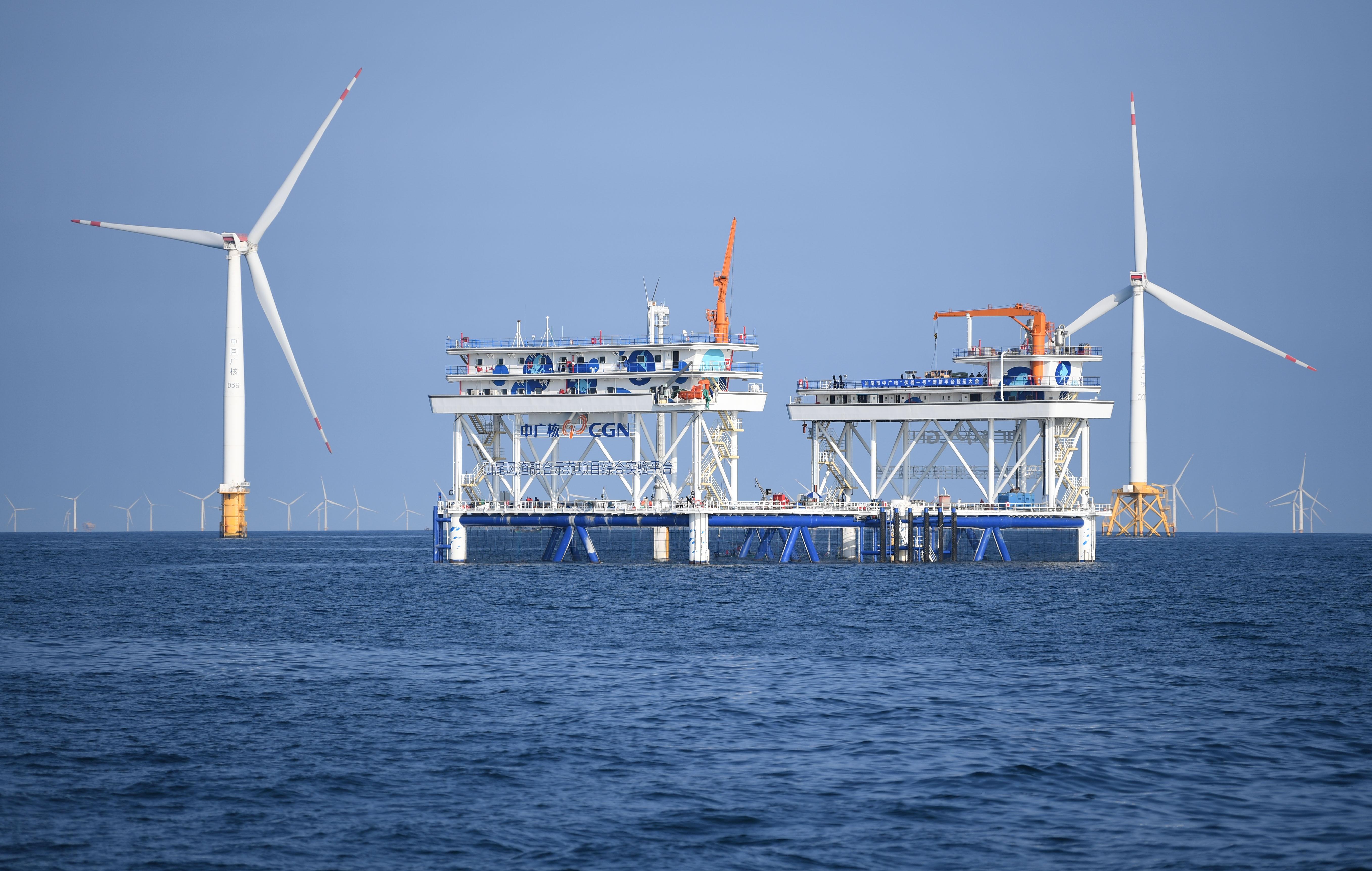 2024年9月4日,超大型风渔融合网箱平台——中广核“伏羲一号”在汕尾建成投运。