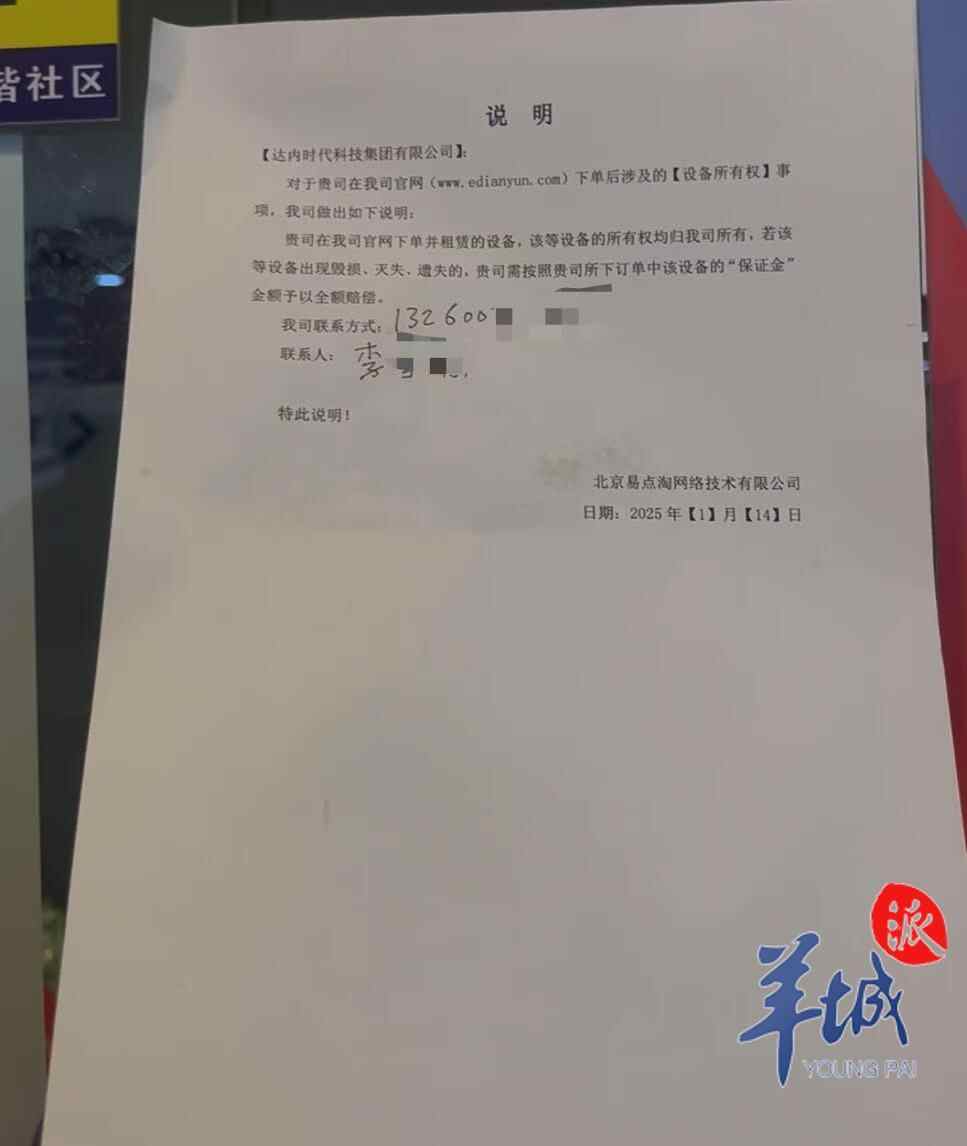记者特别留意到,猎德校区的门店上还贴着一份来自北京易点淘网络技术有限公司的说明,致函方为“达内时代科技集团有限公司”,时间为1月14日。记者致电了说明中的联系人李女士,其表示自己所在的公司是童程童美的供应商,对方在公司租赁了笔记本电脑,合作已有四年多,之所以贴这份说明,是因为看到了网上的消息,且目前联系不上对方。