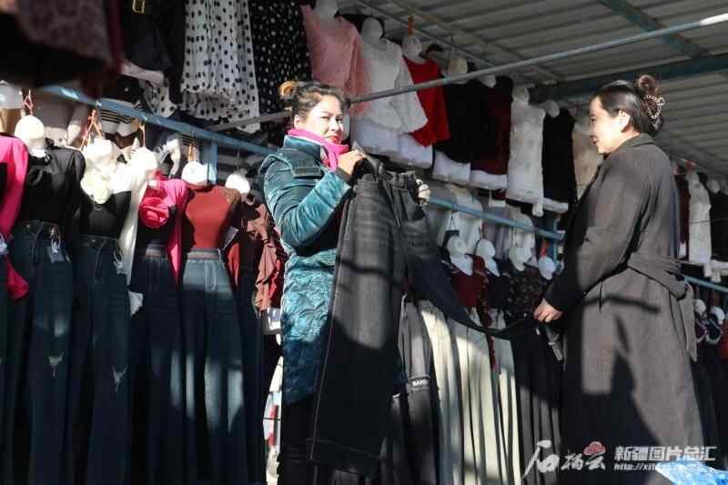 1月11日,乌什县亚曼苏柯尔克孜族乡巴扎上居民正在买衣服。外力·克依木 摄