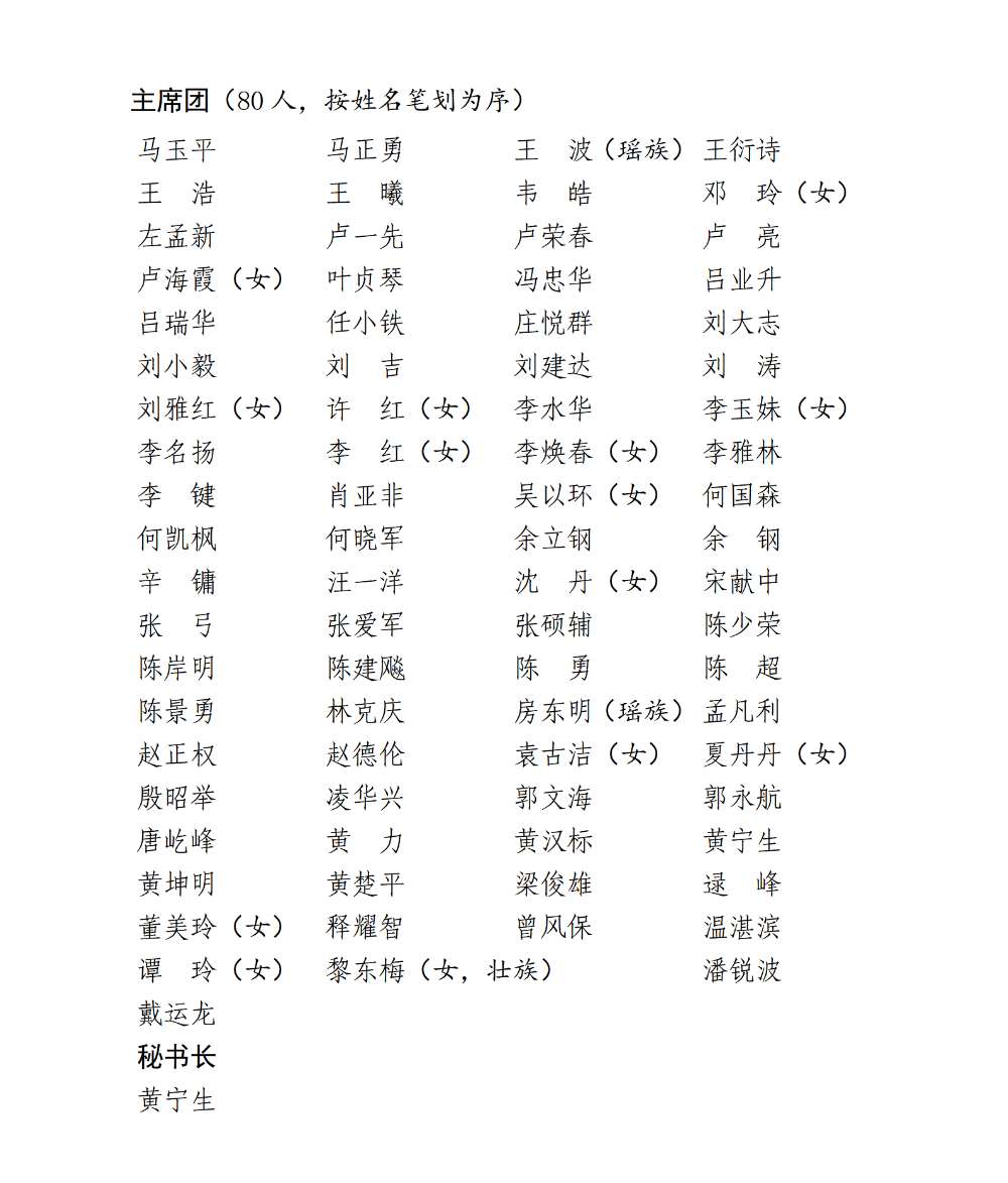 广东省第十四届人民代表大会第三次会议主席团和秘书长名单