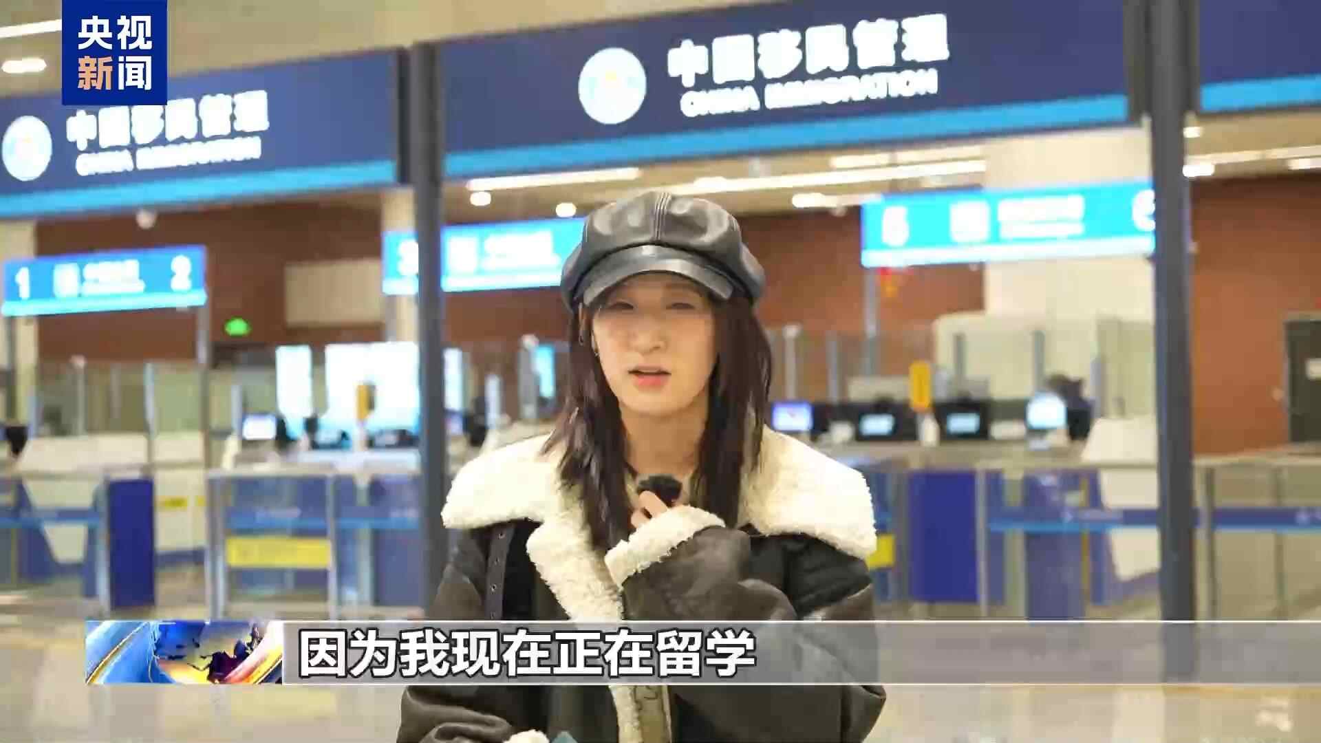 韩国旅客:因为我现在正在留学,不能随意回家,但是现在出台了这个政策,我的家人和朋友可以来中国和我团聚。