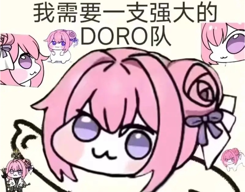 实际上,我们看其二创积累都不能仅仅找胜利女神这一个关键词,比如全网爆火的“Doro表情包”就出自胜利女神,其原型就是上文我们提到的剧情党最爱的TOP1桃乐丝,经由几位画师创造,传播广度甚至还要超出胜利女神本身。