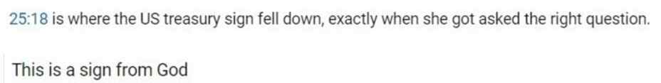 有网友在耶伦的这段视频下跟帖暗示:美国财政部徽标刚好在耶伦被问到“正确”问题的时候掉落,(其中喻意不言自明)。