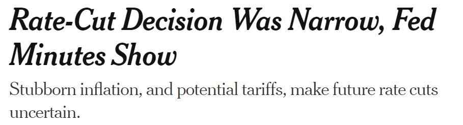 根据美联储近日公布的会议纪要,美联储公布联邦公开市场委员会成员预计,2025年的降息步伐将显著放缓。