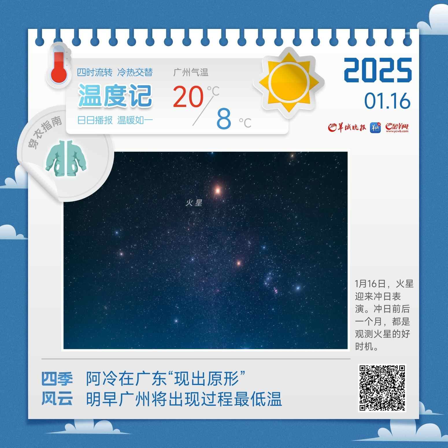 广州市气象台预计,受冷空气影响,16日至17日广州天晴干燥,昼夜温差大,早晚寒冷。预计17日早晨广州将出现冷空气影响过程的最低气温,届时广州北部2℃-4℃(山区0℃左右),中南部5℃-9℃。