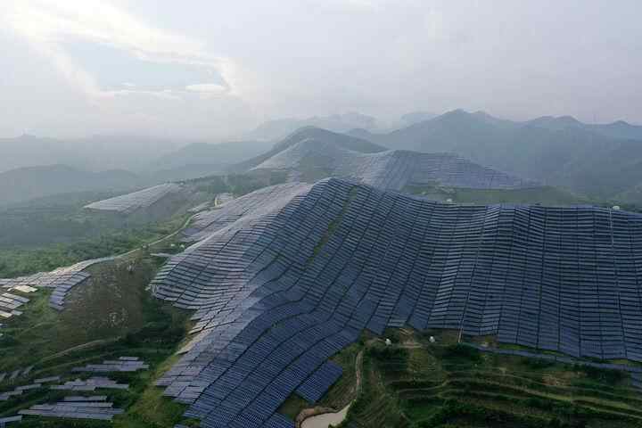这是位于山西省大同市云州区杜庄乡土井村的“熊猫电站”(2024年8月19日摄,无人机照片)。新华社发(赵展 摄)