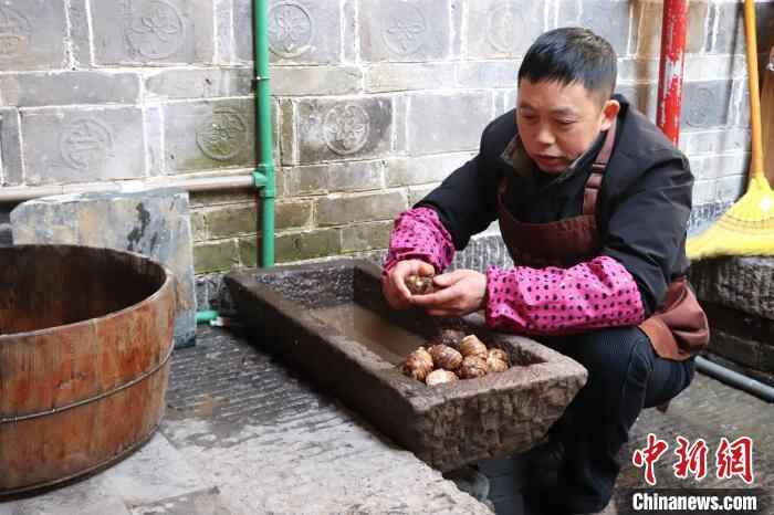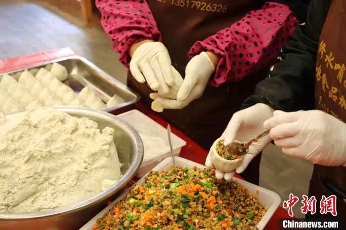 “哨子”是江西省九江市修水县一种特色传统美食,外皮由当地高山特产山芋和西乡红薯粉制作,内馅则以地方特色小料按照传统工艺精制而成。在修水,“哨子”是过年必备的一种美食,也是万家团圆时的第一道热菜,下圆上尖的造型象征着团圆美满与步步高升。图为正在准备食材的厨师。熊锦阳 摄