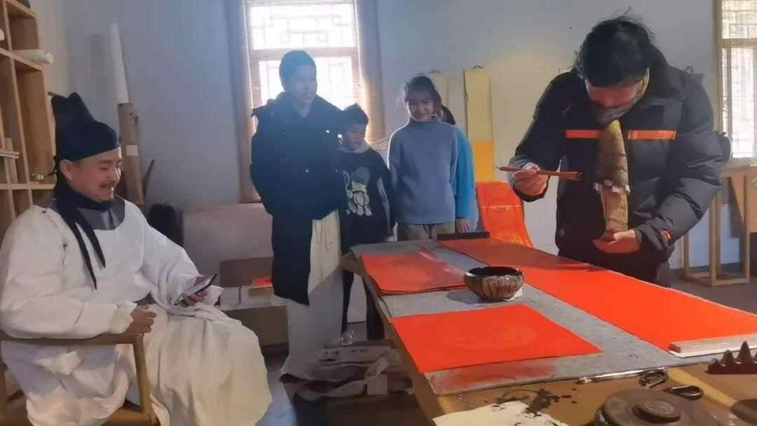 昨天,倪宽在翁城给几个孩子示范写春联。这种示范很重要,在书法大行其道的当下,孩子们需要一个很好的起点,一个对书法审美有根本性影响的很高的起点。
