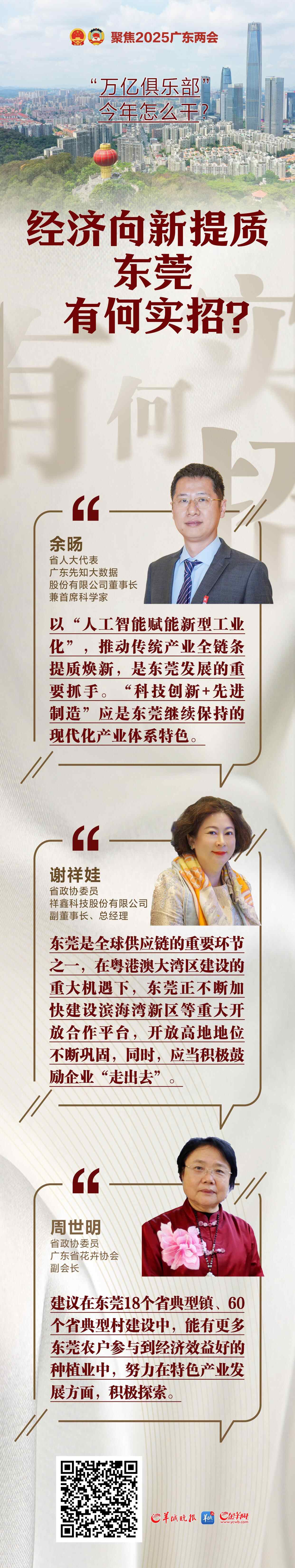 站在2025年“新”起点,积极抓好抓实新一年各项工作,以更加厚实的硬实力担负好挑大梁重任,东莞将有何新作为?值此两会,羊城晚报记者采访省人大代表、省政协委员,听他们为东莞出“新”招。