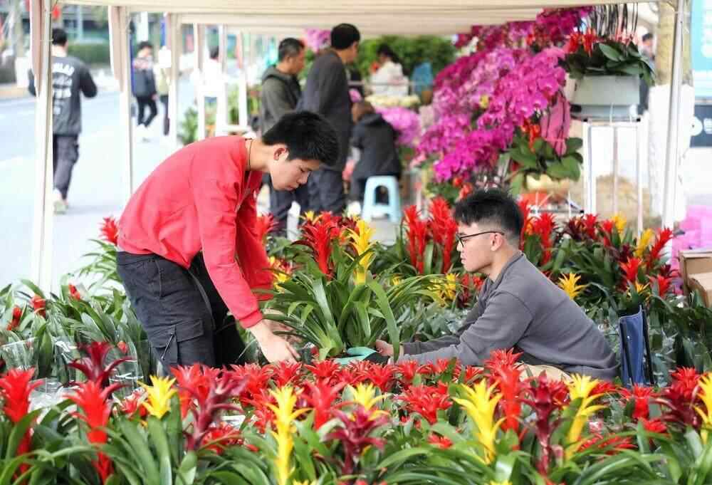 记者看到,活动现场设置了多个摊位,销售年桔、蝴蝶兰、君子兰、玫瑰海棠、富贵竹、一品红、红掌等,琳琅满目,花香四溢。同时,设置了年货、工艺品、美食、车展、趣味游戏等区域,集中展示园区的特色产品,并结合年轻人喜好,引入了多种新潮美食。