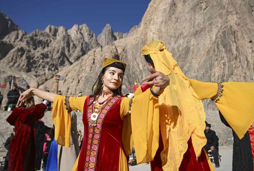 大同乡阿克托尕兰干村村民跳起赞美爱情与家乡的舞蹈《古丽巴尔格》(1月7日摄)。