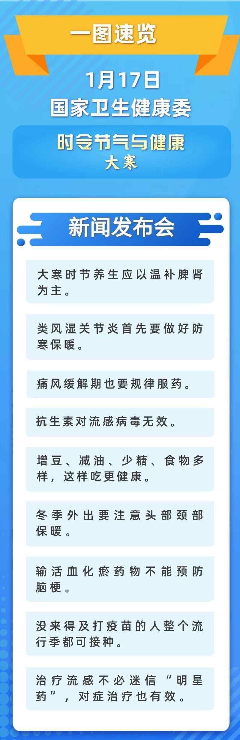 1月17日,国家卫生健康委举行新闻发布会,介绍时令节气与健康有关情况。