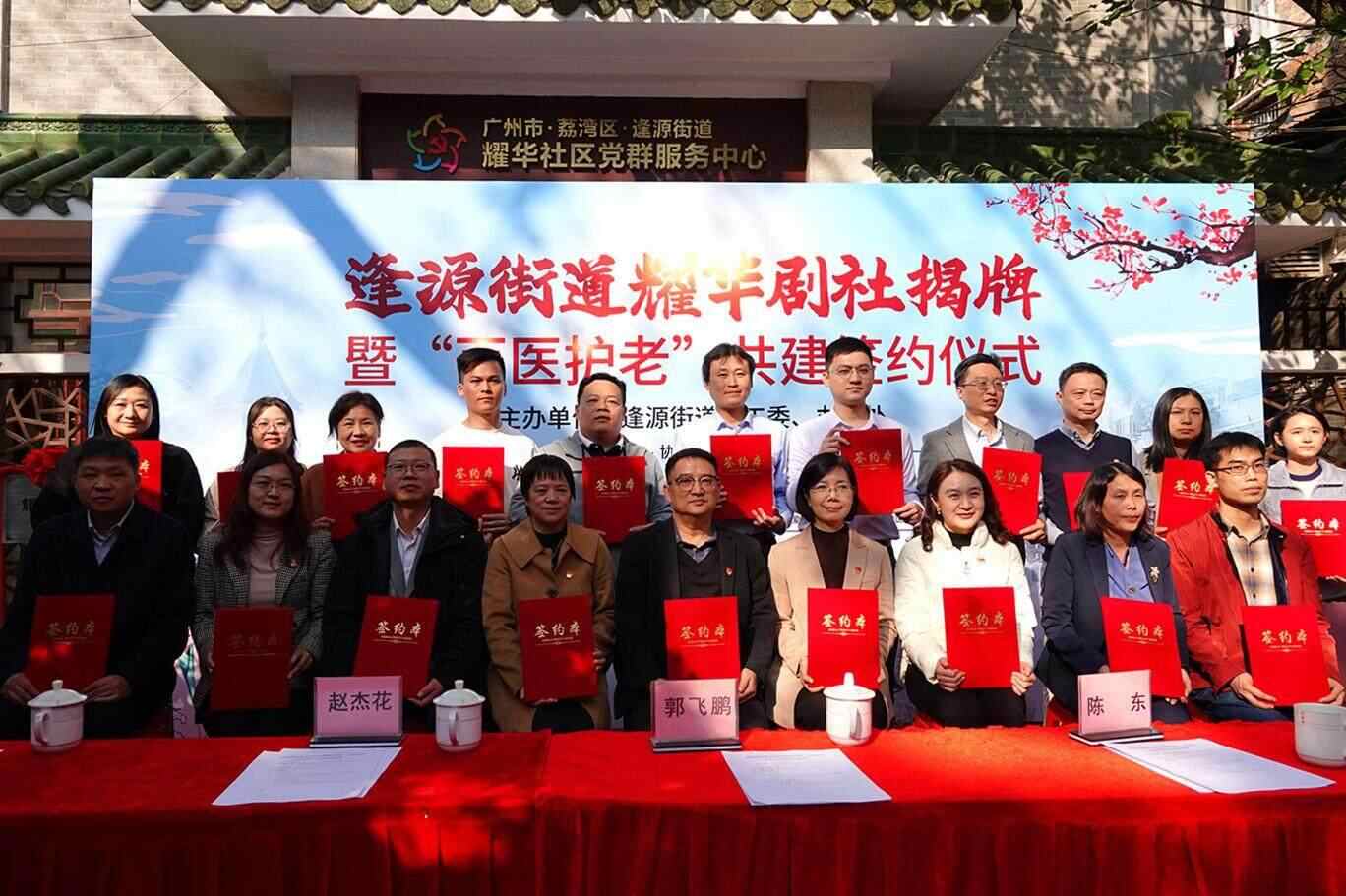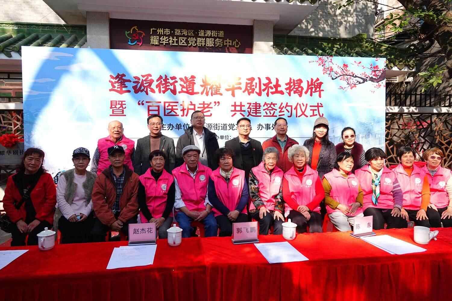 1月17日,广州市荔湾区逢源街道在耀华社区党群服务中心举行“耀华剧社”揭幕仪式暨“百医护老”项目共建签约仪式。