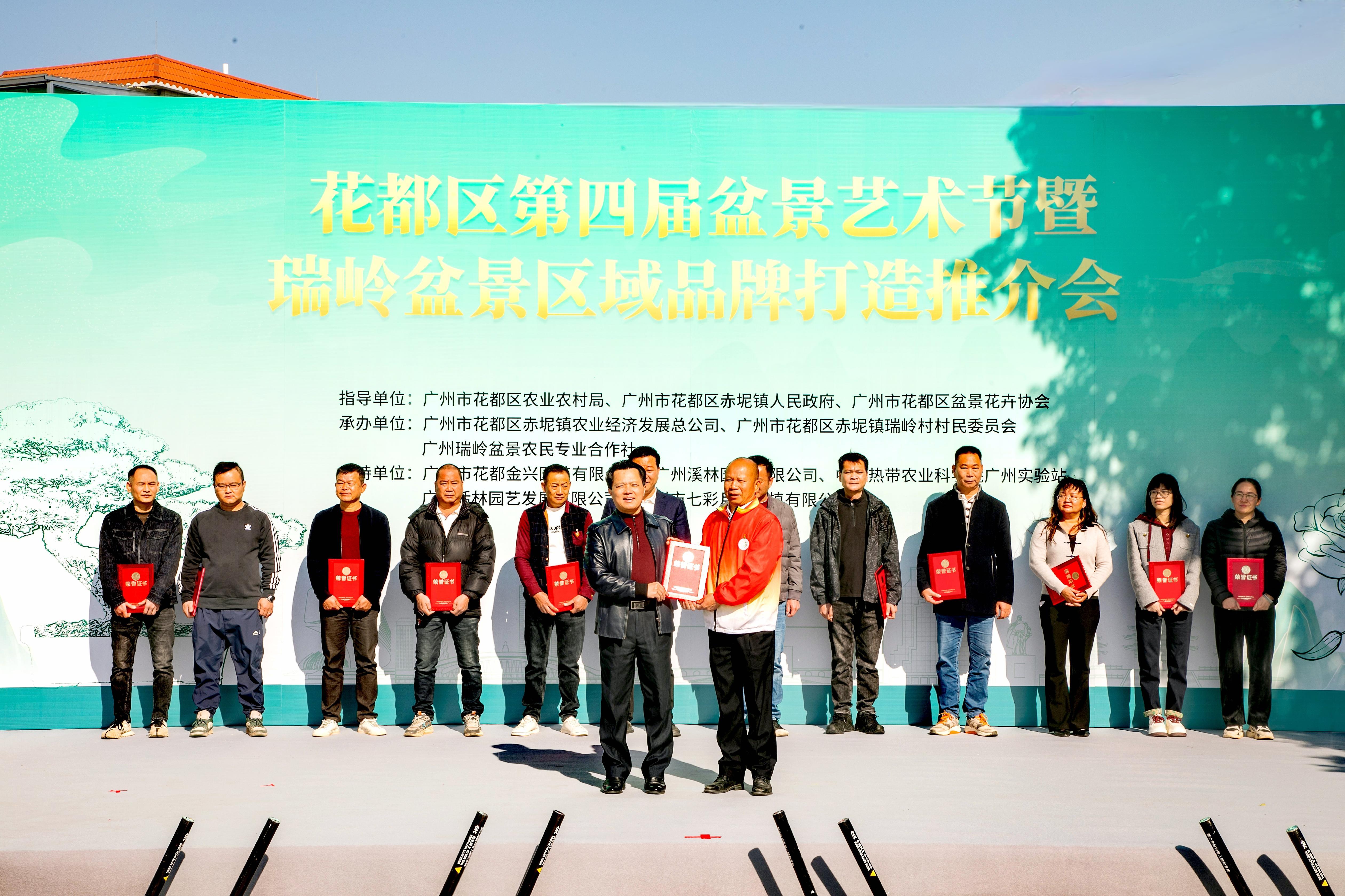 摆放在展区的盆景作品,不少拥有数十年乃至百年树龄,倾注了能工巧匠大量心血。活动现场特意为在盆景艺术的传承与发展作出贡献的佼佼者颁发了“乡土专家证书”,为来之不易的作品颁发了“农交会最受欢迎农产品奖证书”。据赤坭相关工作人员介绍,在花都区委、区政府领导下,赤坭镇已接连创建1个岭南盆景小镇大党委,5间盆景大师工作坊,8个农民专业合作社,13条盆景苗木专业村,培养出超2万名盆景种植农民。赤坭镇得以成为华南地区颇具影响力的高端苗木种植和展销基地。2024年,全镇盆景销售量达4400多万盆,盆景特色产业年产值超10亿元,7条村获评省级“一镇一业、一村一品”专业村。
