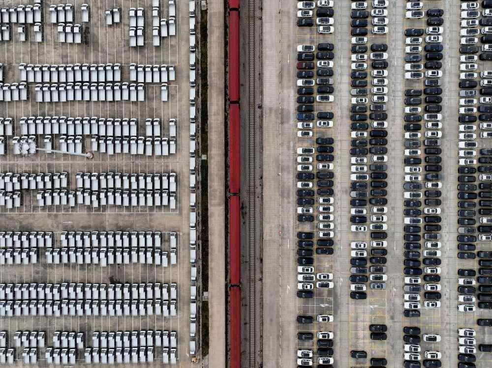 这是在中铁联集武汉中心站拍摄的整装待发的汽车(2024年11月16日摄,无人机照片)。新华社记者 邢广利 摄